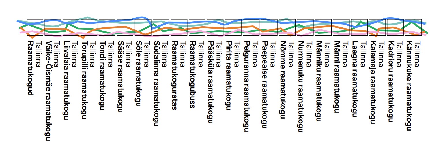 Tallinna Raamatukogude uus visuaalne identiteet, sh logod, kujutavadki mõttelõngu. Igal raamatukogul on oma unikaalne mõttelõngade kogu: