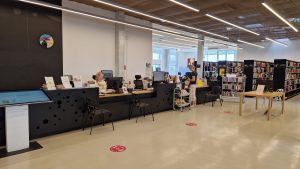 - Ratastoolis ja lapsevankriga pääseb raamatukokku (4. korrusele) liftiga.